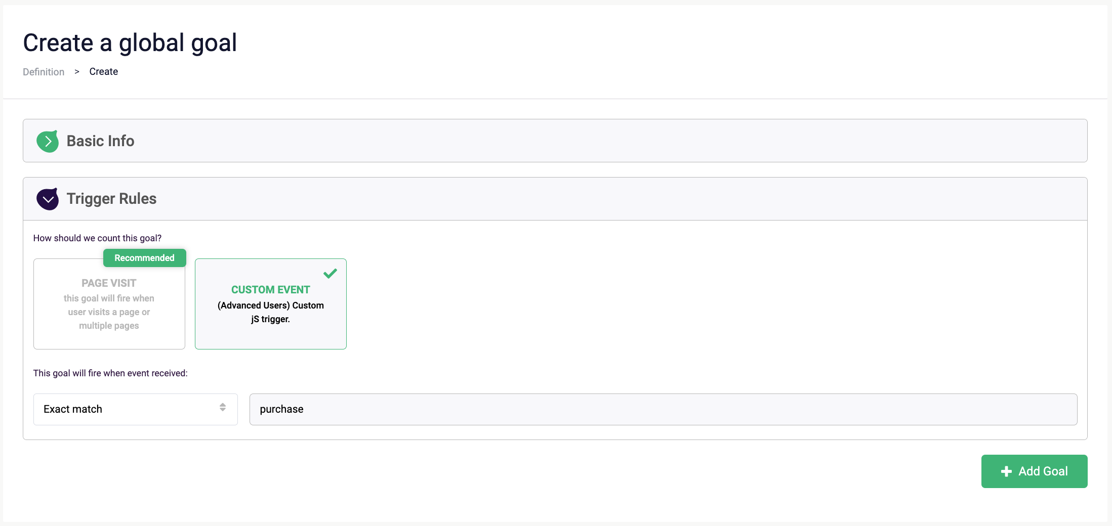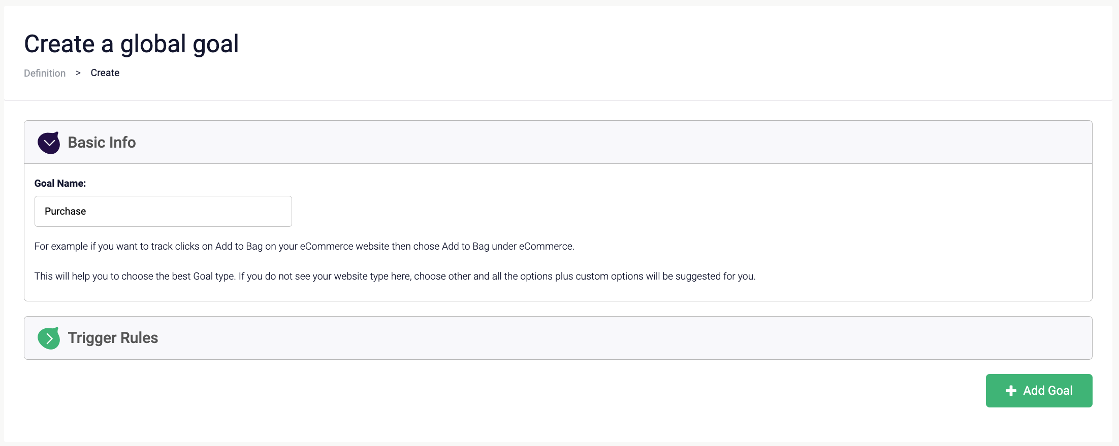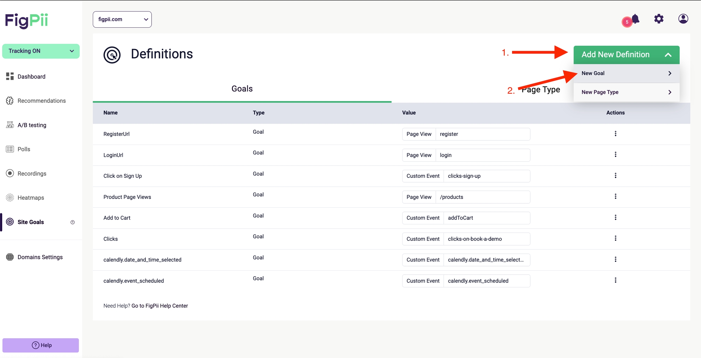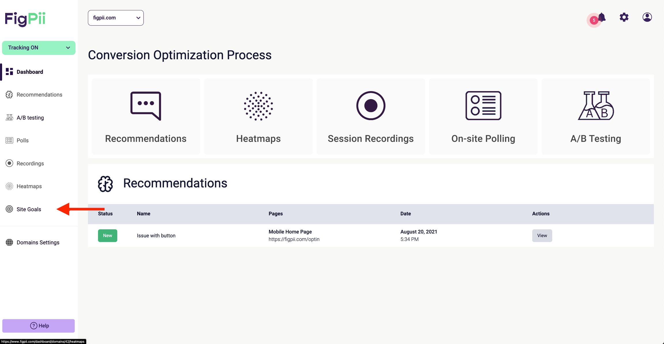 To define event based site goals in FigPii, first navigate to the Site Goals dashboard: